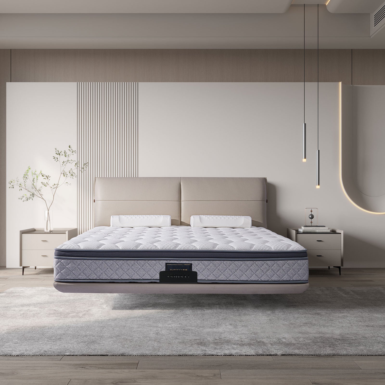 DeRUCCI CLOUDHAVEN Bed Frame BOC1 - 021 draws inspiration from the soft warmth of morning clouds, capturing the essence of the first light of dawn. With a floating design and slim bed edges, paired with a light-toned, minimalist headboard, it evokes the feeling of a gentle morning mist, creating a light and lively haven of comfort.